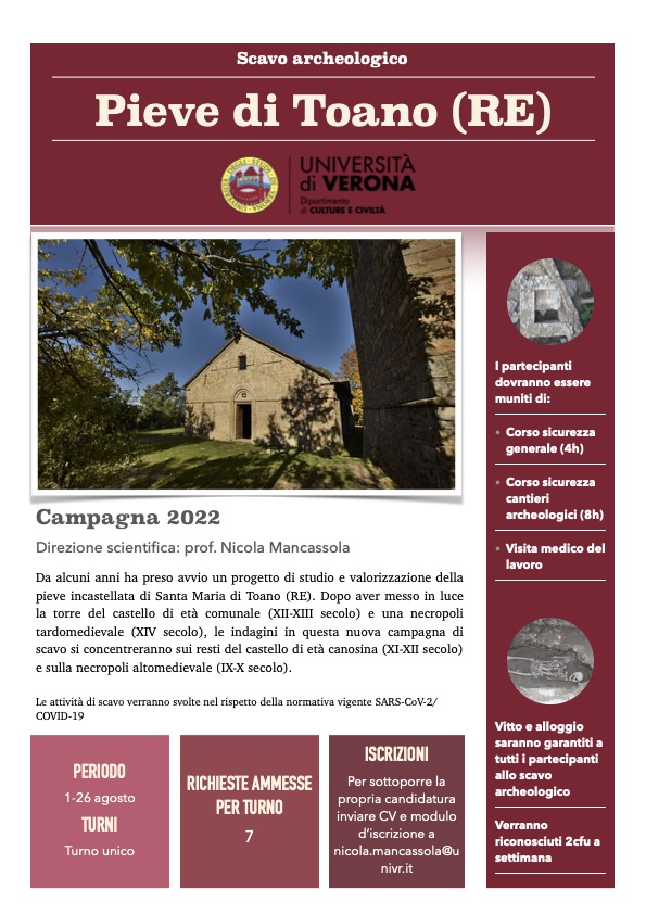 - Toano e Montebaranzone (archeologia medievale) – vedi le pagine social dedicate: Facebook e Instagram
